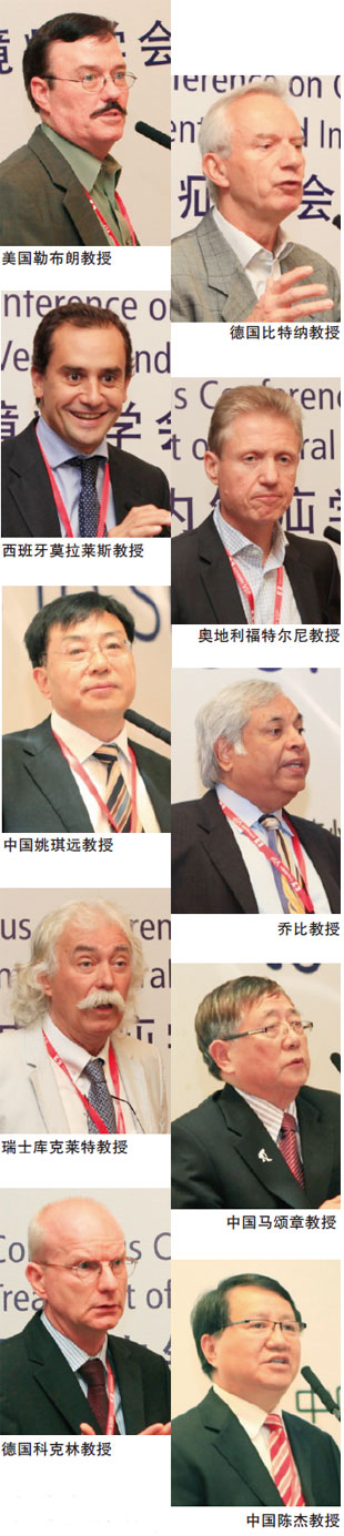 美国疝学会发起人、腹腔镜切口疝修补创始人勒布朗(Leblanc)教授:腰疝与半月线疝的治疗较为棘手,目前尚缺少最佳修补方法的一级证据。关于腰疝,现有的循证医学证据支持腹腔镜下无张力修补优于开放手术(Level 2B)。在腰疝修补术中,掌握解剖知识与此处神经支配非常重要。第11肋间神经或肋骨上神经损伤,可导致较大的腹壁膨出,而不伴有真正的筋膜缺失。在半月线疝的修补方法上,循证医学证据表明,开放纯组织修补方法复发率较高(4.5% );而无张力修补术可以使复发率降低至0,提示了应用补片的重要性。西班牙疝学会主席、西班牙塞维拉大学腹腔镜外科主任莫拉莱斯(Morales)教授:造口旁疝的腹腔镜下修补应该是开放手术的一个安全替代。目前腹腔镜下造口旁疝修补有腹腔镜下造口旁疝修补术、锁孔技术 和Sandwich三种方法,没有一项被认为是更加优越的。生物移植物的应用可能会减少补片相关的并发症,如感染及肠管的腐蚀,但现在仍缺乏大样本病例的临床证据。德国Gifhorn 医院外科主任罗尔(Rohr)教授:我们在过去的10年中使用腹腔内补片置入术(IPOM)对468例患者进行腹腔镜切口疝修补,术后随访1个月至7年,无一例复发,术后并发症较其他手术方式及文献报道也明显减少。能达到这个效果与下列因素有关:术前须选择合适的病例,术中小心分离粘连,使用剪刀,钝性和锐性结合分离,仔细止血,术中要仔细测量并标记疝缺损,补片大小应保证补片与疝缺损每个边覆盖最少应有5 cm,补片置入前预防性应用抗生素,补片在使用时才打开可预防感染,补片置入后要确切固定,无论是用缝合技术还是钉合技术。